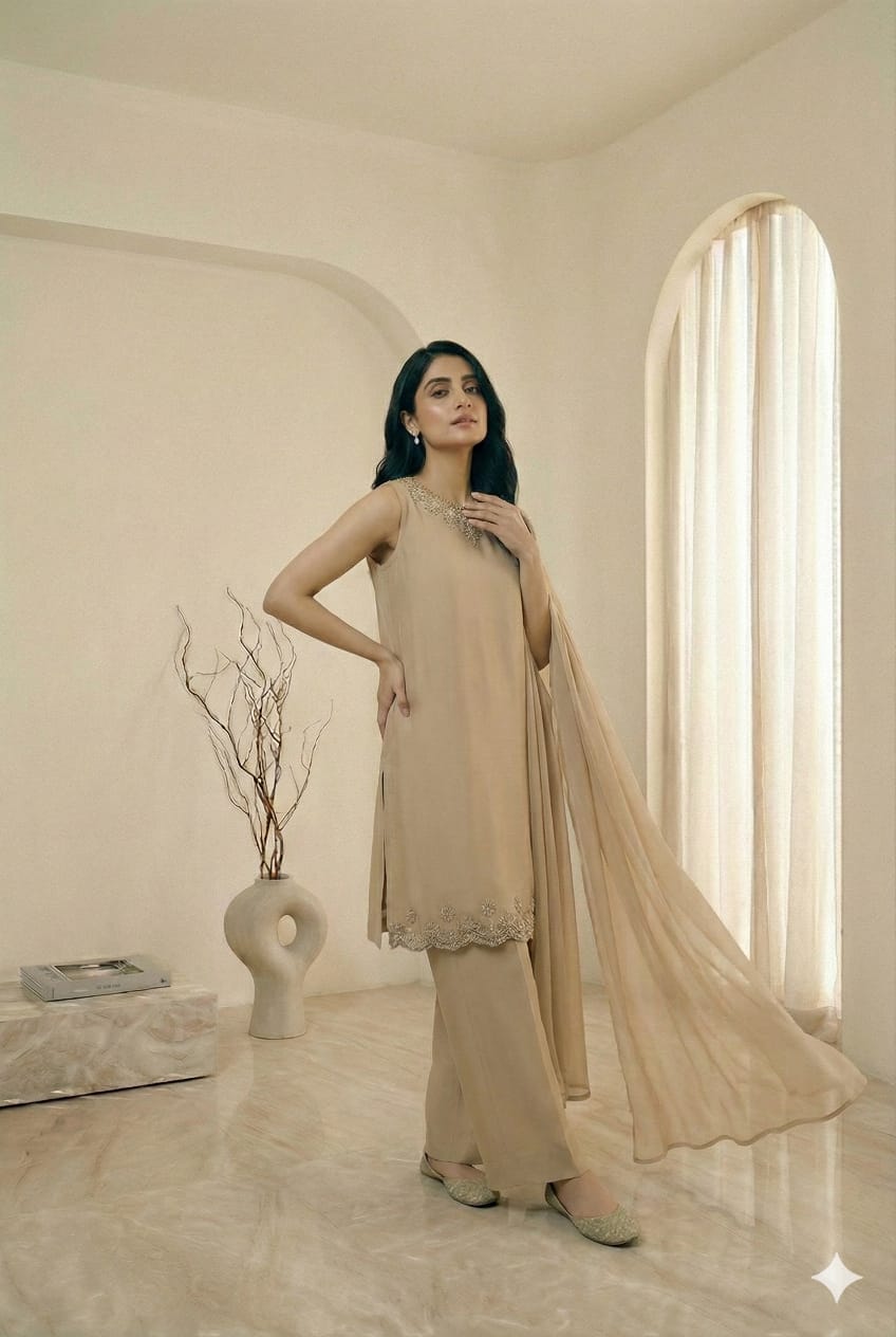 Each Zafinah ensemble is meticulously hand-crafted upon order, requiring a production lead time of 14 days from the date of purchase.