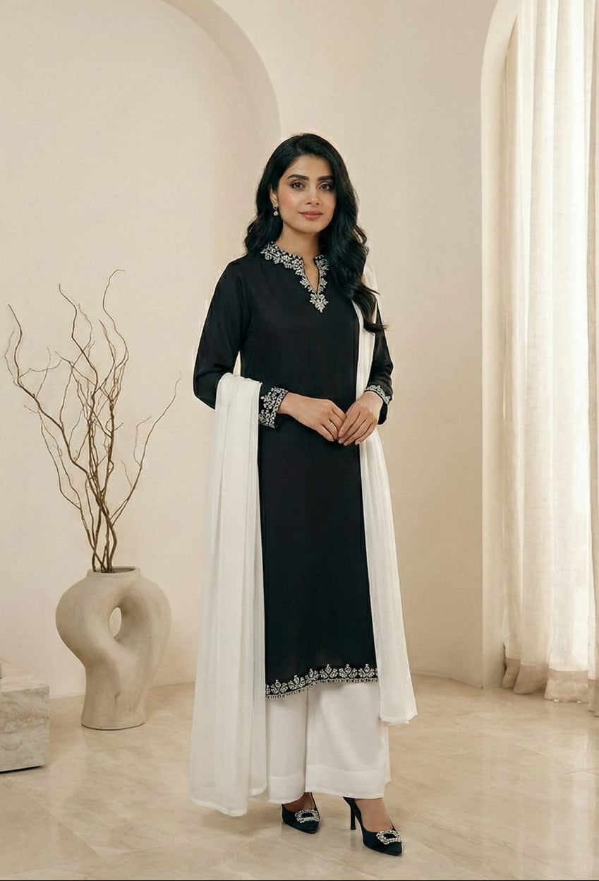 All Zafinah ensembles are meticulously tailored to your custom measurements at no additional cost. Upon ordering, one of our experts will personally reach out to guide you through the measurement process.